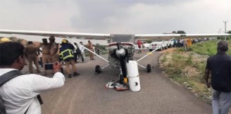തമിഴ്നാട്ടില് വിമാനം നടുറോഡില് ഇറക്കി