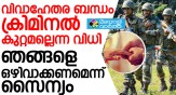 വിവാഹേതരബന്ധം ക്രിമിനല് കുറ്റമല്ലെന്ന വിധി ഞങ്ങളെ ഒഴിവാക്കണമെന്ന് സൈന്യം 497ാംവകുപ്പ് റദ്ദാക്കിയതിലൂടെ സൈന്യത്തിലെ അച്ചടക്കം ലംഘിക്കപ്പെടുമെന്ന് ആശങ്ക
