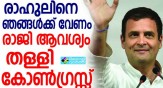 രാഹുൽ ഗാന്ധിയുടെ രാജിസന്നദ്ധത തള്ളി കോൺഗ്രസ്. രാഹുലിന്റെ നേതൃത്വം പാർട്ടിക്ക് അനിവാര്യമാണെന്നും പ്രവർത്തകസമിതി യോഗം വിലയിരുത്തി. ഇന്ന് പാർട്ടി ആസ്ഥാനത്ത...
