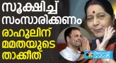 കോൺഗ്രസ് അധ്യക്ഷൻ രാഹുൽ ഗാന്ധിയെ വിമർശിച്ച് വിദേശകാര്യമന്ത്രി സുഷമാ സ്വരാജ്. വാക്കുകളിൽ ഔചിത്യം പുലർത്തണമെന്ന് രാഹുലിനോട് സുഷമ ആവശ്യപ്പെട്ടു. മുതിർന്ന ബിജെപി നേതാവ് എൽ കെ അദ്വാനിയെ കുറിച്ച് രാഹുൽ നടത്...