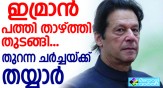 ഇമ്രാന് പത്തി താഴ്ത്തി തുടങ്ങി; ഇന്ത്യന് സൈനികകേന്ദ്രങ്ങള്ക്ക് നേരെ പാക് ആ ക്രമണം എന്ന് ഇന്ത്യ വ്യക്തമാക്കിയ സാഹചര്യത്തില് ഇന്ത്യയുമായി തുറന്ന ചര്ച്ചയ്ക്ക് തയ്യാറെന്ന് പാക്പ്രധാനമന്ത്രി ഇമ്രാന്ഖാന്