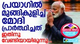 പ്രയാഗിൽ മുങ്ങികുളിച്ച് മോദി ; കുംഭമേളയോട് അനുബന്ധിച്ച് ഉത്തർ പ്രദേശിലെ പ്രയാഗിൽ രുദ്രാക്ഷമാലകളണിഞ്ഞ് അരയറ്റം വെള്ളത്തിൽ മുങ്ങി നിന്ന് പ്രധാന മന്ത്രി നരേന്ദ്ര മോദി പ്രാർത്ഥിച്ചത് എന്തായിരുന്നു?
