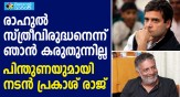 കോൺഗ്രസ് അധ്യക്ഷൻ രാഹുൽ ഗാന്ധി സ്ത്രീവിരുദ്ധ പരാമർശം നടത്തിയെന്ന രാഷ്ട്രീയ വിവാദം കത്തിപ്പടരുമ്പോൾ കോൺഗ്രസ് അധ്യക്ഷനു പിന്തുണയുമായി നടൻ പ്രകാശ് രാജ് രംഗത്ത്. രാഹുലിന്റെ പ്രസംഗത്തെ എല്ലാവരും തെറ്റായാ...