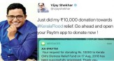 പേ ടിഎം മുതലാളിയ്ക്ക് ട്വിറ്ററില് തെറി, ദുരിതാശ്വാസ നിധിയിലേക്ക് സംഭാവനയായി നല്കിയത് 10,000 രൂപ!