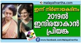 അടുത്ത ഇന്ദിരയാകാന് പ്രിയങ്കയ്ക്കാകുമോ രാജ്യം ഉറ്റുനോക്കുന്നു....അമേഠിയില് രാഹുല് തന്നെ, റായ് ബറേലിയില് സോണിയക്ക് പകരം പ്രിയങ്ക വഡേര ? 2019ലെ ലോകസഭാ തിരഞ്ഞെടുപ്പ് കോണ്ഗ്രസിന് നിര്ണായകം