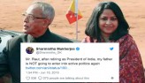 പ്രണാബ് മുഖര്ജി സജീവ രാഷ്ട്രയത്തിലേക്കില്ല ; ശിവസേന നേതാവ് സഞ്ജയ് റൗത്തിനു മറുപടിയുമായി മകള് ശര്മിഷ്ഠ മുഖര്ജി