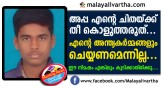 അപ്പ എന്റെ ചിതയ്ക്കു തീ കൊളുത്തരുത്... എന്റെ അന്ത്യകര്മ്മങ്ങളും ചെയ്യണമെന്നില്ല.. ഈ നിമഷം എങ്കിലും കുടിക്കാതിരിക്കു.... പിതാവിന്റെ മദ്യപാന ശീലത്തില് മനംനൊന്ത് പ്ലസ്ടു വിദ്യാര്ത്ഥി ജീവനൊടുക്കി