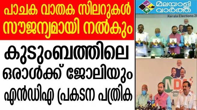 ആകർഷക ഓഫറുകളുമായി എൻഡിഎ പ്രകടന പത്രിക... ബിപിഎല് കാര്ഡുടമകള്ക്ക് പ്രതിവര്ഷം ആറ് പാചക വാതക സിലണ്ടറുകള് സൗജന്യമായി നല്കും... കുടുംബത്തിലെ ഒരാൾക്ക് ജോലിയും നൽകും....