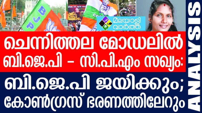 ചെന്നിത്തല മോഡലിൽ ബി ജെ പി - സി പി.എം... സഖ്യം: ബി ജെപി ജയിക്കും; കോൺഗ്രസ് ഭരണത്തിലേറും....