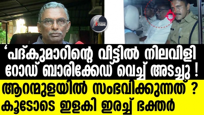 പത്തനംതിട്ടയില് വന് പൊട്ടിത്തെറി. പാര്ട്ടി ഓഫീസുകള്ക്ക് നേരെ ഇരച്ച് പ്രതിഷേധം. ആറന്മുളയില് പോലീസിനെ ഇറക്കി സര്ക്കാര് നീക്കം. പദ്മകുമാറിന്റെ അറസ്റ്റിന് പിന്നാലെ വീടിന് സുരക്ഷ ഏര്പ്പെടുത്തി. പദ്മകുമാറിന്റെ വീട്ടില് നിലവിളിയും ബഹളവുമാണ്. വീടിന്റെ ഭാഗത്തേക്കുള്ള റോഡ് ബാരിക്കേഡുകള് വെച്ച് അടച്ചിരിക്കുകയാണ്. ആരേയും ഈ ഭാഗത്തേക്ക് കടത്തിവിടുന്നതും ഇല്ല. വഴി അടച്ച്പൂട്ടിയതോടെ പ്രദേശത്തുള്ളവര് പ്രതിഷേധത്തില്. കണ്ടവന്മാര് അമ്പലം കൊള്ളയടിച്ചതിന് നാട്ടുകാര്ക്ക് സൈ്വര്യം തരില്ലെന്ന് പ്രദേശത്തുള്ളവര് പച്ചയ്ക്ക് വിളിച്ച് പറയുന്നു. പദ്മകുമാറിന്റെ കുടുംബത്തിന് നേരെയും തെറിവിളി. വാസു അകത്തായപ്പോഴും ഉയര്ന്ന ഒരു പ്രതിഷേധം നിന്റെയൊക്കെ പത്ത് തലമുറ നന്നായാലും അത് അമ്പലം കൊള്ളയുടെ സമ്പത്ത് കൊണ്ടെന്നാണ്. പദ്മകുമാറിന്റെ കാര്യത്തിലും ജനം പ്രതിഷേധിക്കുന്നത് ഇത് പറഞ്ഞുകൊണ്ട്. പദ്മകുമാറിന്റെ കുടുംബത്തോടെ എരിതീയില് വീണിരിക്കുകയാണ്. നേരെ ചെന്ന് വീഴുന്നത് വറചട്ടിയിലേക്ക്.
