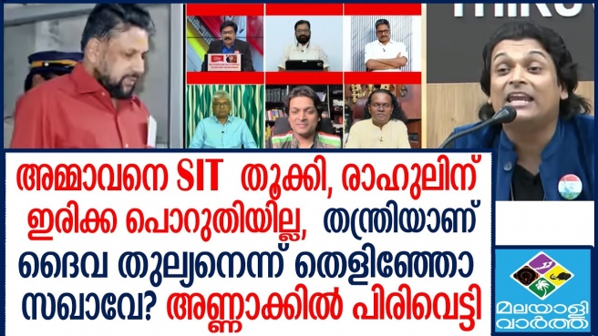 24 ന്യൂസിലെ ചർച്ചയ്ക്കിടെ രാഹുൽ ഈശ്വറിനെ വിമർശിച്ച് സിപിഐഎം നേതാവ് ഡോക്ടർ പി കെ ഗോപൻ. അദ്ദേഹത്തിന്റെ വാക്കുകൾ ഇങ്ങനെ;- ആരാന്റെ അമ്മയ്ക്ക് ഭ്രാന്ത് ഇളകുമ്പോൾ കാണാൻ നല്ല രസം ആണ് എന്ന് പറയുന്നത് പോലെയാണ് രാഹുലിന്റെ വെപ്രാളം. കേസിൽ ഇത് വരെ നടന്ന അറസ്റ്റ് ഏതു വകുപ്പ് എന്നൊന്നും രാഹുൽ ചോദിച്ചിട്ടില്ല. SIT അന്വേഷണത്തെ ചോദ്യം ചെയ്തിട്ടില്ല. എന്നാൽ സ്വന്തം അമ്മാവൻ അറസ്റ്റിലായതോടെ രാഹുൽ അതിനെ ചോദ്യം ചെയ്യുകയാണ് . തന്ത്രി അസ്റ്റിലായതോടെ രാഹുലിന്റെ നിലപാട് വ്യത്യസ്തമാണ്.