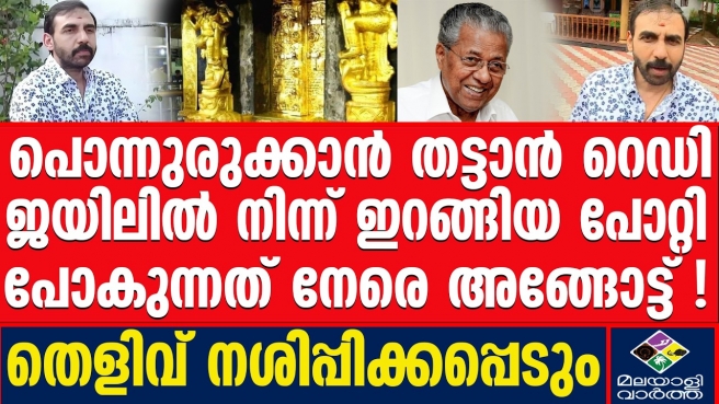 പൊന്നുരുക്കാൻ തട്ടാൻ റെഡി ജയിലിൽ നിന്ന് ഇറങ്ങിയ പോറ്റി പോകുന്നത് നേരെ അങ്ങോട്ട്!! തെളിവ് നശിപ്പിക്കപ്പെടും..