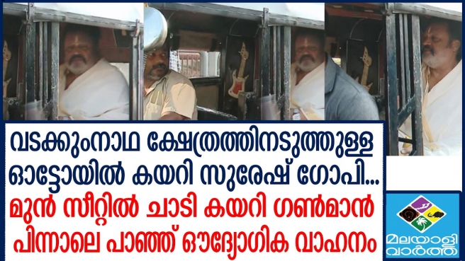 ഉടന് ഓട്ടോസ്റ്റാന്റില് നിന്ന് മന്ത്രി സുരേഷ് ഗോപി ഓട്ടോ വിളിക്കുകയും അതില് കയറി രാമനിലയത്തിലേക്ക് മടങ്ങുകയുമായിരുന്നു. കേന്ദ്രമന്ത്രി ഓട്ടോയില് കയറിയതിന് പിന്നാലെ ഗണ്മാന് ഓട്ടോഡ്രൈവര്ക്കൊപ്പം വാഹനത്തിന്റെ മുന്നിലേക്ക് കയറി.