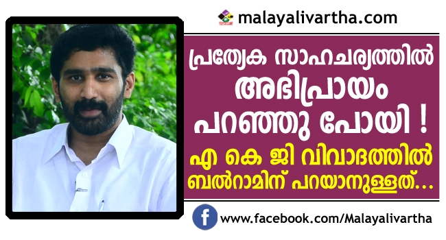 എ കെ ജിയെ പറ്റി മോശമായ രീതിയിൽ പരാമർശം നടത്തിയ വി.ടി. ബല്റാം എം.എല്.എ.ക്കെതിരെ നല്ല രീതിയിലുള്ള വിമർശനങ്ങൾ ഉയർന്നു വന്നിരുന്നു. എന്നാൽ പ്രത്യേക സാഹചര്യത്തിലാണ് അന്ന് അഭിപ്രായം പറയേണ്ടി വന്നതെന്ന് വി.ടി. ബല്റാമിന്റെ വിശദീകരണം. കൊണ്ടോട്ടി മുനിസിപ്പല് കോണ്ഗ്രസ് കമ്മിറ്റിയുടെ രാഷ്ട്രീയ വിശദീകരണ യോഗത്തില് എ.കെ.ജി വിവാദത്തെ പരാമര്ശിച്ച് സംസാരിക്കുകയായിരുന്നു അദ്ദേഹം. വിവാദവുമായി മുന്നോട്ട് പോകാന് താല്പര്യമില്ലെന്ന് പറഞ്ഞിട്ടും നൂറ് പേര് പോലും കാണാന് സാധ്യതയില്ലാത്ത കമന്റ് സ്ക്രീന്ഷോട്ട് എടുത്ത് പ്രചരിപ്പിക്കുകയായിരുന്നു എന്നും അദ്ദേഹം പറഞ്ഞു.