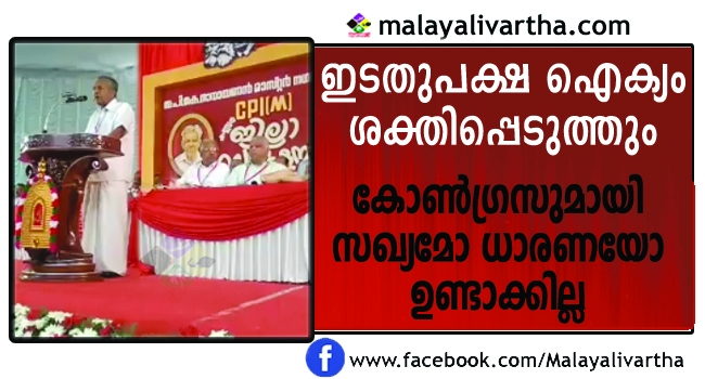 വര്ഗീയതയെ ചെറുക്കാന് കോണ്ഗ്രസിന് കഴിയില്ലന്നും കോണ്ഗ്രസിന് സ്വാധീനമുണ്ടായിരുന്ന സംസ്ഥാനങ്ങളിലാണ് ബി ജെ പി വളരുന്നതെന്നും അദ്ദേഹം പറഞ്ഞു. ബി ജെ പിയേയും സഖ്യകക്ഷികളെയും പരാജയപ്പെടുത്തുന്നതിന് ജനാധിപത്യ ശക്തികളുടെ ഐക്യനിര ഉയര്ത്തിക്കൊണ്ട് വരണമെന്നും പിണറായി സൂചിപ്പിച്ചു. കൂടാതെ പാര്ട്ടിയെ വളര്ത്തുന്നതിനും ഇടത് ഐക്യം ശക്തിപ്പെടുത്തുന്നതിനുമായിരിക്കും മുന്ഗണനയെന്നും അദ്ദേഹം വ്യക്തമാക്കി.