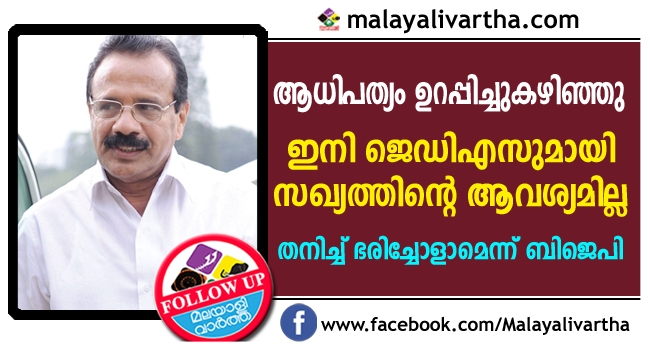 കര്ണാടകയില് ആരുമായും സഖ്യം ആവശ്യമില്ലെന്ന് ബി.ജെ.പി ; ഇനി ജെഡിഎസുമായി സഖ്യത്തിന്റെ ആവശ്യമില്ല തനിച്ച് ഭരിച്ചോളാമെന്ന് സദാനന്ദ ഗൗഡ