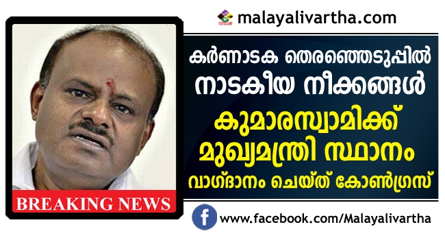 കർണാടക തെരെഞ്ഞെടുപ്പിൽ നാടകീയ രാഷ്ട്രീയനീക്കം ; തങ്ങള്ക്ക് പിന്തുണ നല്കിയാല് എച്ച്ഡി കുമാരസ്വാമിയെ മുഖ്യമന്ത്രിയാക്കാമെന്നാണ് കോണ്ഗ്രസിന്റെ വാഗ്ദാനം
