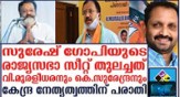 സുരേഷ് ഗോപിയുടെ രാജ്യസഭാ സീറ്റ് തുലയാൻ പാരവച്ചത് കെ സുരേന്ദ്രനും വി മുരളീധരനും; സംസ്ഥാനത്തെ പ്രധാന നേതാവായി സുരേഷ് ഗോപി ഉയരാതിരിക്കാനുള്ള മുരളീധരന്റെ മുന്കരുതലായിരുന്നു അതെന്ന് ആരോപണം; സുരേഷ് ഗോപിക്കെതിരെ സംസ്ഥാന ബി.ജെ.പിയില് നിന്നുണ്ടാകുന്ന ഒതുക്കല് ശ്രമത്തെ സംബന്ധിച്ച് കേന്ദ്ര നേതൃത്വത്തിന് പരാതി നല്കാന് ഒരുങ്ങി ഒരു വിഭാഗം