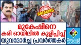 മുകേഷ് എം എൽ എയ്ക്കെതിരെ യുവമോർച്ചയുടെ കരി ഓയിൽ പ്രതിഷേധം; 'വിരുന്ന്' എന്ന ചിത്രത്തിൽ നിന്നും മുകേഷിനെ നീക്കം ചെയ്യണമെന്നും യുവമോർച്ച