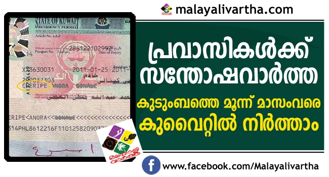 പ്രവാസികൾക്ക് സന്തോഷ വാർത്ത ; കുവൈറ്റില് കുടുംബ സന്ദര്ശന വിസയുടെ കാലാവധി മൂന്ന് മാസമാക്കി ഉയര്ത്തിയതായി ആഭ്യന്തരമന്ത്രാലയത്തിന്റെ ഉത്തരവ്