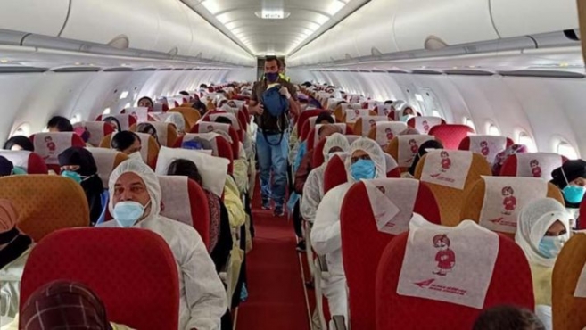 റിയാദില് കോവിഡ് ബാധിച്ച് മരിച്ച ആദ്യ ഇന്ത്യാക്കാരനും മലയാളിയുമായ സഫ്വാെന്റ ഭാര്യ ഖമറുന്നിസയും യാത്രക്കാരില് ഉണ്ട്. മലപ്പുറം ചെമ്മാട് സ്വദേശിയായ സഫ്വാന് ഏപ്രില് നാലിനാണ് റിയാദിലെ സൗദി ജര്മന് ആശുപത്രിയില് മരിച്ചത്. റിയാദില് ഡ്രൈവറായിരുന്ന സഫ്വാെന്റ അടുത്തേക്ക് മാര്ച്ച് എട്ടിനാണ് ഖമറുന്നിസ വിസിറ്റ് വിസയിലെത്തിയത്. രണ്ടാഴ്ചക്ക് ശേഷം സഫ്വാന് അസുഖം പിടികൂടുകയായിരുന്നു. സഫ്വാെന്റ മരണശേഷം ഒറ്റപ്പെട്ട ഖമറുന്നിസയെ റിയാദ് കെ.എം.സി.സിയും ചെമ്മാട് പ്രവാസി കൂട്ടായ്മയുമാണ് സംരക്ഷിച്ചിരുന്നത്.