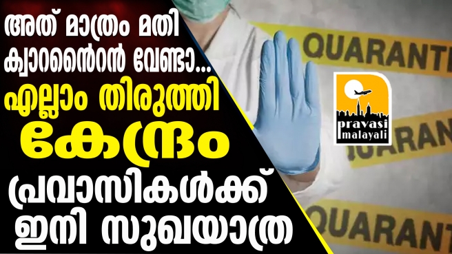 പ്രവാസികൾക്ക് ഒരു സന്തോഷ വാർത്തയുമായി കേന്ദ്രം; വിദേശത്ത് നിന്ന് വരുന്നവർക്ക് ക്വാറന്റൈന് ആവശ്യമില്ലെന്ന് പുതിയ മാർഗ നിർദേശം, എന്നാൽ കയ്യിൽ ആർ.ടി.പി.സി.ആർ ടെസ്റ്റ് നടത്തി നെഗറ്റീവ് സര്ട്ടിഫിക്കറ്റ് ഉണ്ടാകണം, പുതുക്കിയ മാർഗനിർദ്ദേശങ്ങൾ ഇങ്ങനെ