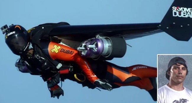 ജെറ്റ്മാന് ദുബായ് കമ്പനിയുടെ ഭാഗമായി നിരവധി പറക്കലുകള് നടത്തിയ അദ്ദേഹം ബുര്ജ് ഖലീഫയേക്കാള് ഉയരത്തില് പറന്ന് ശ്രദ്ധേയനായിരുന്നു. ഈ വര്ഷം ഫെബ്രുവരിയില് അദ്ദേഹം 6000 അടി ഉയരത്തില് പറന്നത് ലോകശ്രദ്ധ നേടിയിരുന്നു. ജെറ്റ്മാന് എന്നറിയപ്പെടുന്ന സ്വിസ് പൈലറ്റ് യെവ്സ് റോസിയാണ് വിമാനച്ചിറകുകളുടെ മാതൃകയിലുള്ള കൊച്ചു യന്ത്രസംവിധാനം നിര്മിച്ചത്.