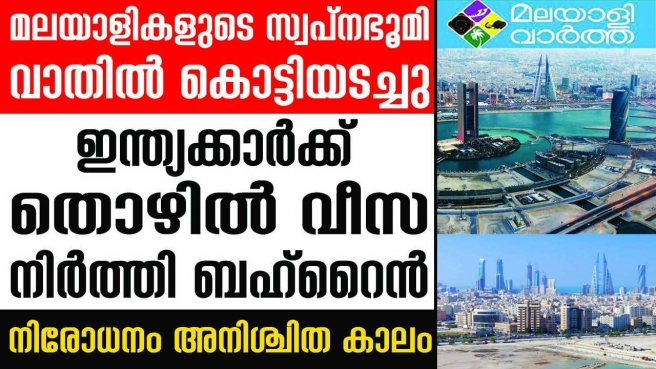 ഇനിയെന്തു ചെയ്യും... ഇന്ത്യയുള്പ്പെടെ 5 രാജ്യങ്ങളിലുള്ളവര്ക്ക് തൊഴില് വീസ നല്കുന്നത് നിര്ത്തി ബഹ്റൈന്; നിരോധനം എത്ര കാലത്തേക്കെന്നു വ്യക്തമാക്കിയിട്ടില്ല; ഇന്ത്യയുള്പ്പെടെയുള്ള രാജ്യങ്ങളിലുള്ളവര്ക്ക് വിസിറ്റിംഗ് വീസയിലും ബഹ്റൈനില് പ്രവേശനം അനുവദിക്കില്ല