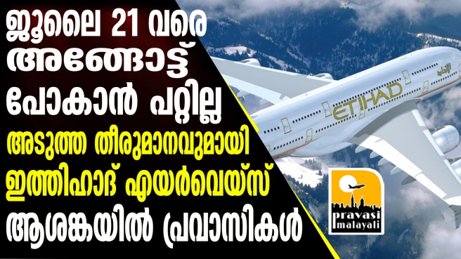 ജൂലൈ 21 വരെ ആ പ്രവാസ നാട്ടിലേക്ക് പോകാന് പറ്റില്ല..... കടുത്ത തീരുമാനവുമായി ഇത്തിഹാദ് എയര്വെയ്സ്.... എന്ന് പോകാനാകും എന്ന പ്രതീക്ഷയോടെ പ്രവാസികള്....