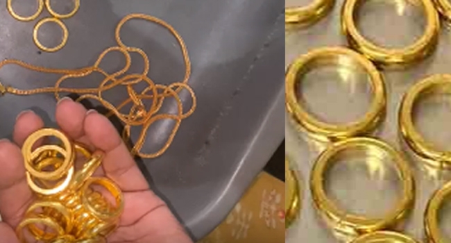 ദുബൈയില് നിന്നും വന്ന കുടുംബം ബാഗേജുകളിലായിട്ടാണ് സ്വര്ണം കടത്തിയത്. റിങ്ങുകളായും ചെയിനുകളായുമാണ് 33 ലക്ഷം രൂപ വില വരുന്ന 619 ഗ്രാം സ്വര്ണം കൊണ്ടുവന്നത്. ബാഗേജുകള് സ്ക്രീനിങ് നടത്തിയപ്പോള് സംശയം തോന്നിയതിനാല് വിശദമായി പരിശോധിച്ചപ്പോഴാണ് ഇവ കണ്ടെത്തിയത്.