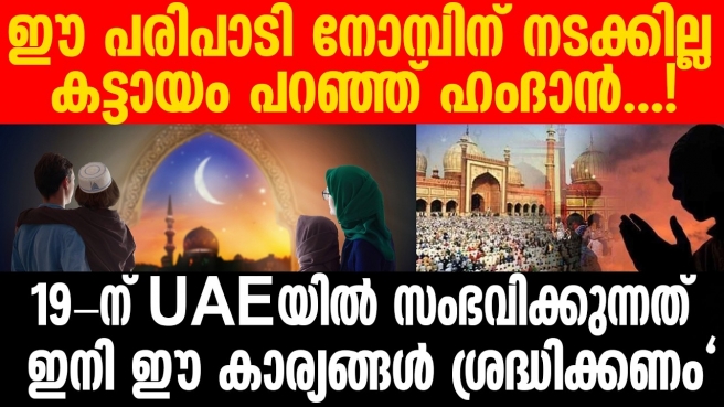 ഈ പരിപാടി നോമ്പിന് നടക്കില്ല കട്ടായം പറഞ്ഞ് ഹംദാൻ...! 19-ന് UAE-യിൽ സംഭവിക്കുന്നത് ഇനി ഈ കാര്യങ്ങൾ ശ്രദ്ധിക്കണം
