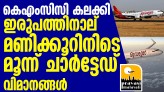 ഇരുപത്തിനാല് മണിക്കൂറിനിടെ സൗദിയിലെ ദമ്മാമില് നിന്നും മൂന്ന് വിമാനങ്ങള് ചാര്ട്ട് ചെയത് കെ.എം.സി.സി. സൗദി എയര്ലൈന്സിന്റെ രണ്ടും സ്പൈസ് ജെറ്റിന്റെ ഒരു സര്വീസുമാണ് ദമ്മാമില് നിന്നും കോഴിക്കോട് കൊച...