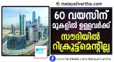 60 വയസിന് മുകളിൽ പ്രായമുള്ളവർ ഇനി സൗദിയിൽ ജോലിക്ക് അപേക്ഷിക്കേണ്ടതില്ല. സ്വകാര്യ സ്ഥാപനങ്ങളിലേക്കുള്ള റിക്രൂട്ട്മെന്റ് പ്രായപരിധിയിലാണ് പുതിയ വ്യവസ്ഥ ബാധകം