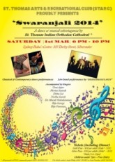 സെന്റ് തോമസ് ഇന്ത്യന് ഓര്ത്തഡോക്സ് കത്തീഡ്രലിന്റെ ഭാഗമായ സെന്റ് തോമസ് ആര്ട്ട്സ് ആന്ഡ് റിക്രിയേഷണല് ക്ലബിന്റെ (STARC) ആഭിമുഖ്യത്തില് 'സ്വരാഞ്ജലി 2014 ' എന്ന...