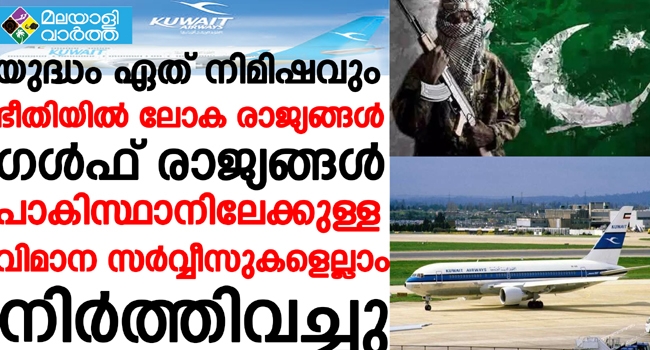 യുദ്ധ ഭീതിയില് പാകിസ്താനിലേക്കുള്ള വിമാനസര്വീസുകള് നിര്ത്തിവെച്ച് ഗള്ഫ് രാജ്യങ്ങള്... ആഭ്യന്തര, അന്താരാഷ്ട്ര വ്യോമപാതകള് പാകിസ്താന് അടച്ചതായി പ്രഖ്യാപിച്ച സാഹചര്യത്തിലാണ് തീരുമാനം