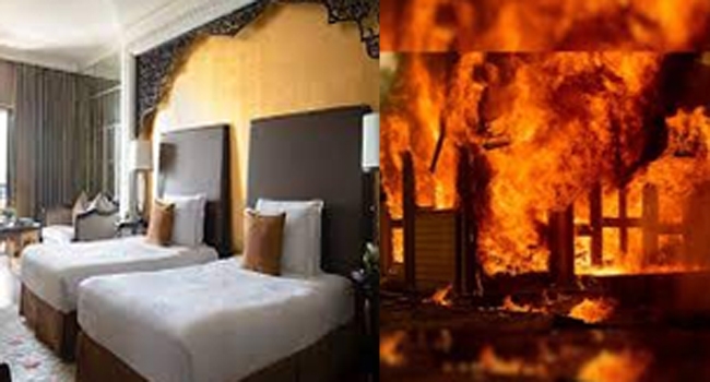 കൂടാതെ ഹോട്ടലിലെ അഗ്നി സുരക്ഷാ ഉപകരണത്തില് സ്റ്റിക്കര് പതിപ്പിച്ച് പ്രവര്ത്തന രഹിതമാക്കിയ ശേഷം മുറിക്ക് തീയിടുകയായിരുന്നു. യുവാവിനൊപ്പം ഒരു യുവതിയും മറ്റൊരാളുമാണ് ഉണ്ടായിരുന്നത്. യുവതി തന്റെ സഹോദരിയാണെന്നാണ് ഇയാള് പരിചയപ്പെടുത്തിയത്. ഒപ്പമുണ്ടായിരുന്നയാള് പുരോഹിതനെപ്പോലെ വേഷം ധരിച്ചിരുന്നുവെന്നുമാണ് പോലീസ് പറയുന്നത്.