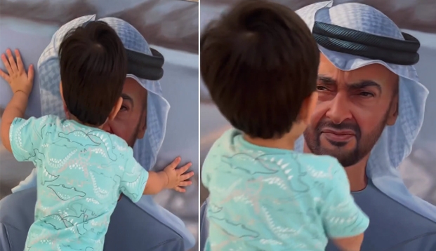 ഷെയ്ഖ് ഹംദാന്റെ ഇരട്ടകുട്ടികളിൽ ഒരാളാണ് റാഷിദ്. വീഡിയോയില് ഷെയ്ഖ് ഹംദാൻ നന്ദി എന്നു പറയുന്നത് കേൾക്കാം. എന്നാൽ കുഞ്ഞ് റാഷിദിനാകട്ടെ ഒരു തവണ ഉമ്മ വച്ച് മതിയായില്ല. അവൻ വീണ്ടും ചിത്രത്തിന് ഉമ്മ വയ്ക്കുന്നത് വീഡിയോയിൽ നമ്മൾക്ക് കാണാൻ സാധിക്കും. പരേതനായ ഷെയ്ഖ് സായിദ് ബിന് സുല്ത്താന് അല് നഹ്യാന്റെ മൂന്നാമത്തെ മകനാണ് ഷെയ്ഖ് സായിദ്. പിതാവിന്റെയും മാതാവ് ഷെയ്ഖ ഫാത്തിമ ബിന്ത് മുബാറക്കിന്റെയും നിരീക്ഷണത്തിലാണ് വളര്ന്നത്.