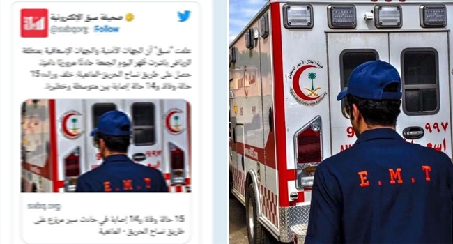 സൗദിയിൽ ബസ് അപകടത്തിൽ പൊലിഞ്ഞത് 15 ജീവനുകൾ, 14 പേർക്കു പരുക്ക്, 11 പേരുടെ നില ഗുരുതരമാണെന്ന റിപ്പോർട്ടുകൾ