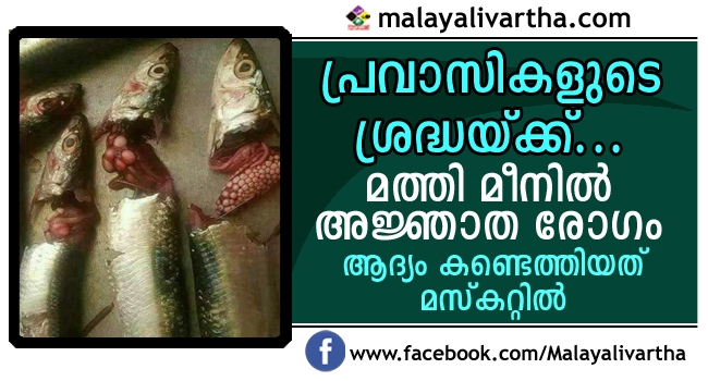 മത്തി വാങ്ങി കഴിക്കുന്ന പ്രവാസികള് ശ്രദ്ധിക്കുക... മത്തിയില് അജ്ഞാത രോഗമുണ്ടെന്ന് റിപ്പോര്ട്ടുകള്, കഴിച്ചാല് മാറാരോഗങ്ങള് വരെ പിടിപ്പെടാം, മസ്കറ്റിലാണ് രോഗമുള്ള മത്തി മീനുകള് കണ്ടെത്തിയത്