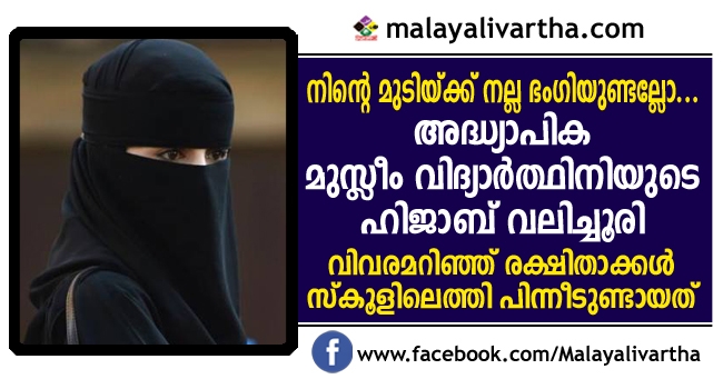 അദ്ധ്യാപിക മുസ്ലീം വിദ്യാര്ത്ഥിനിയുടെ ഹിജാബ് വലിച്ചൂരി, സംഭവം രക്ഷിതാക്കളെ അറിയിച്ചു, രക്ഷിതാക്കള് സ്കൂളിലെത്തിയതും പിന്നീടുണ്ടായത് ഞെട്ടിപ്പിക്കുന്ന സംഭവങ്ങള്...