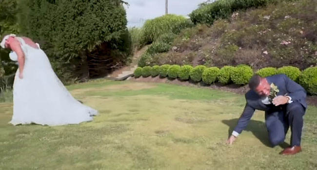 വധുവിനെ കാത്തു നിന്ന ബില്ലിയുടെ അടുത്തേക്ക് ഗൗണും ആക്സസറീസും ധരിച്ച് ജോണ്സ് എത്തുകയായിരുന്നു. പിന്നിലേക്ക് തിരിഞ്ഞു നോക്കിയ ബില്ലിയുടെ ചുമലിലേക്ക് ജോണ്സ് ചാഞ്ഞു. ആദ്യം അമ്പരന്ന ബില്ലിക്ക് പിന്നെ ചിരിയടക്കാനായില്ല.