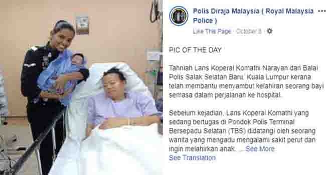 പൂര്ണഗര്ഭിണിയായ ഒരു ഇന്തോനേഷ്യന് യുവതി ക്വാലലംപൂരിലെ ബെര്സാപദുവില് ബസിറങ്ങി. ഉടനെ ഇവര്ക്ക് പ്രസവവേദന ആരംഭിക്കുകയായിരുന്നു. ഉടന് തന്നെ ഇവര് പോലീസിന്റെ സഹായം അഭ്യര്ഥിക്കുകയായിരുന്നു.