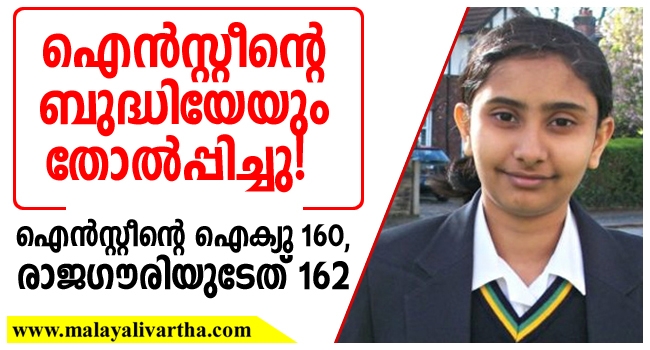 ഐന്സ്റ്റീനെക്കാളും ഹോക്കിങ്ങിനേക്കാളും ഐക്യു പോയിന്റില് രണ്ട് പോയിന്റ് അധികം നേടിയാണ് ഇന്ത്യക്കാരിയായ ഈ കൊച്ചുമിടുക്കി ശ്രദ്ധ നേടിയത്. കഴിഞ്ഞ മാസം മാഞ്ചസ്റ്ററില് നടന്ന ബ്രിട്ടിഷ് ഐക്യു ടെസ്റ്റിലാണ് രാജഗൗരി 162 ഐക്യു പോയിന്റ് നേടി ഒന്നാം സ്ഥാനത്തെത്തിയത്. പതിനാറ് വയസ്സില് താഴെയുള്ളവരുടെ ഏറ്റവും മികച്ച ഐക്യു പോയിന്റാണ് ഇത്.