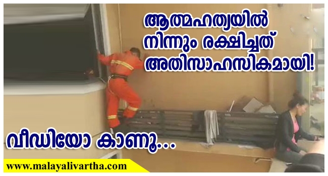 ആത്മഹത്യാ ഭീഷണിയുമായി പതിനഞ്ചാം നിലയില് നിന്ന യുവതിയെ അതിസാഹസികമായി ഫയര്ഫോഴ്സ് രക്ഷിക്കുന്നതിന്റെ വീഡിയോ