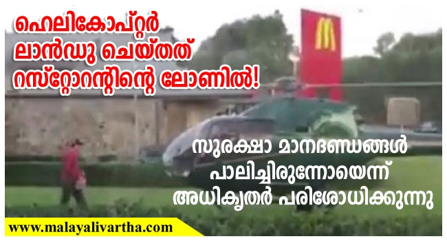 വിശപ്പ് മാറ്റാന് മക്ഡൊണാള്ഡ്സ് റസ്റ്റോറന്റിനു മുന്നില് ഹെലികോപ്റ്റര് ലാന്ഡു ചെയ്തു