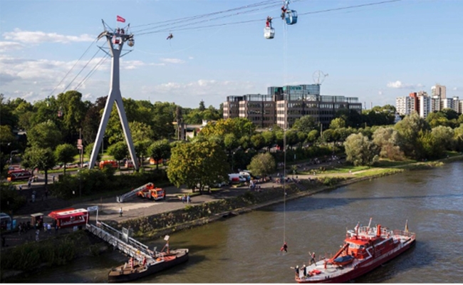 റയിന് നദിക്ക് 40 അടി മുകളിലായി സഞ്ചാരികള്ക്കായി നിര്മ്മിച്ച കേബിള് കാറിന്റെ ചക്രങ്ങള് പോയതിനാല് കാര് നിന്ന് പോയതിനെ തുടര്ന്ന് കേബിള് കാറില് കുടുങ്ങിയ യാത്രക്കാരെ സാഹസികമായി രക്ഷപ്പെടുത്തി.