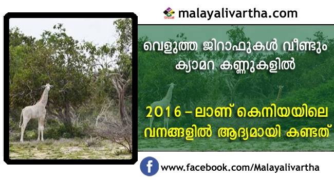 ചരിത്രത്തില് ആദ്യമായി വെളുത്ത ജിറാഫുകളെ ക്യാമറ കണ്ണുകള്ക്കു മുന്നില് കിട്ടി. കെനിയയിലാണ് വെളുത്ത ജിറാഫുകളെ കണ്ടെത്തിയത്. അമ്മ ജിറാഫിന്റെയും കുട്ടി ജിറാഫിന്റെയും ചിത്രങ്ങളാണ് പതിഞ്ഞത്.