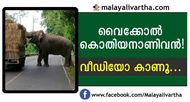 ലോറി തടഞ്ഞു നിര്ത്തി വൈക്കോല് തട്ടിയിടുന്ന ആനയുടെ ദൃശ്യങ്ങള് കൗതുകമാകുന്നു(വീഡിയോ)