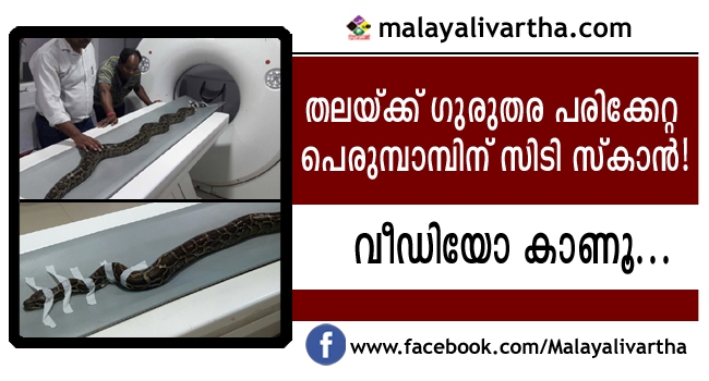 സ്നേക് ഹെല്പ് ലൈന് അധികൃതരുടെ സംരക്ഷണിയിലാണ് പാമ്പ് ഇപ്പോഴുള്ളത്. സിടി സ്കാന് പരിശോധനാഫലം എത്തിയാലുടന് തുടര് ചികിത്സ ആരംഭിക്കുമെന്ന് ഹെല്പ് ലൈന് അധികൃതര് പറഞ്ഞു.