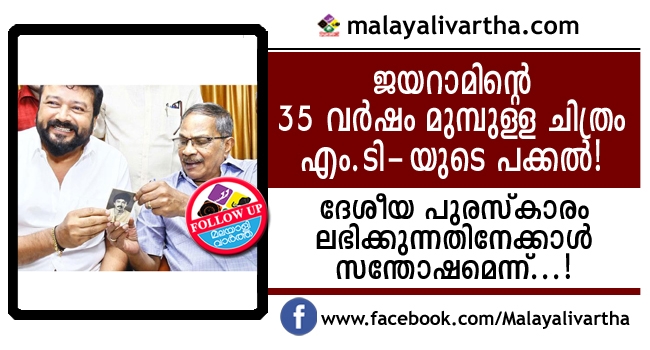 35 വര്ഷം മുമ്പ് സിനിമയിലഭിനയിക്കാന് അവസരം തേടി അമ്മാവന് മലയാറ്റൂരിനെ ഏല്പ്പിച്ച ഫോട്ടോ എംടി വാസുദേവന് നായരുടെ കൈയ്യില് കണ്ടതിന്റെ അത്ഭുതത്തിലാണ് നടന് ജയറാം.